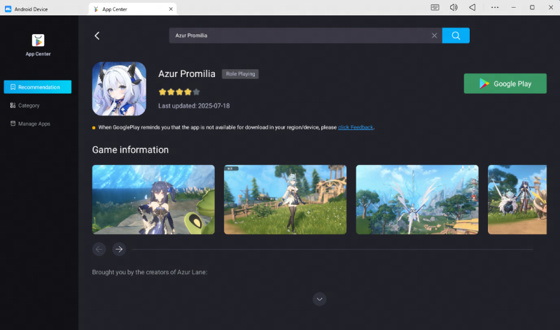 We also introduce MuMuPlayer, the top Android emulator, to help you play Azur Promilia. MuMuPlayer's community guarantee you would not miss any important infromation from Azur Promilia and its effectiviness helps you to play Azur Promilia on PC or Mac withour any obstacles.