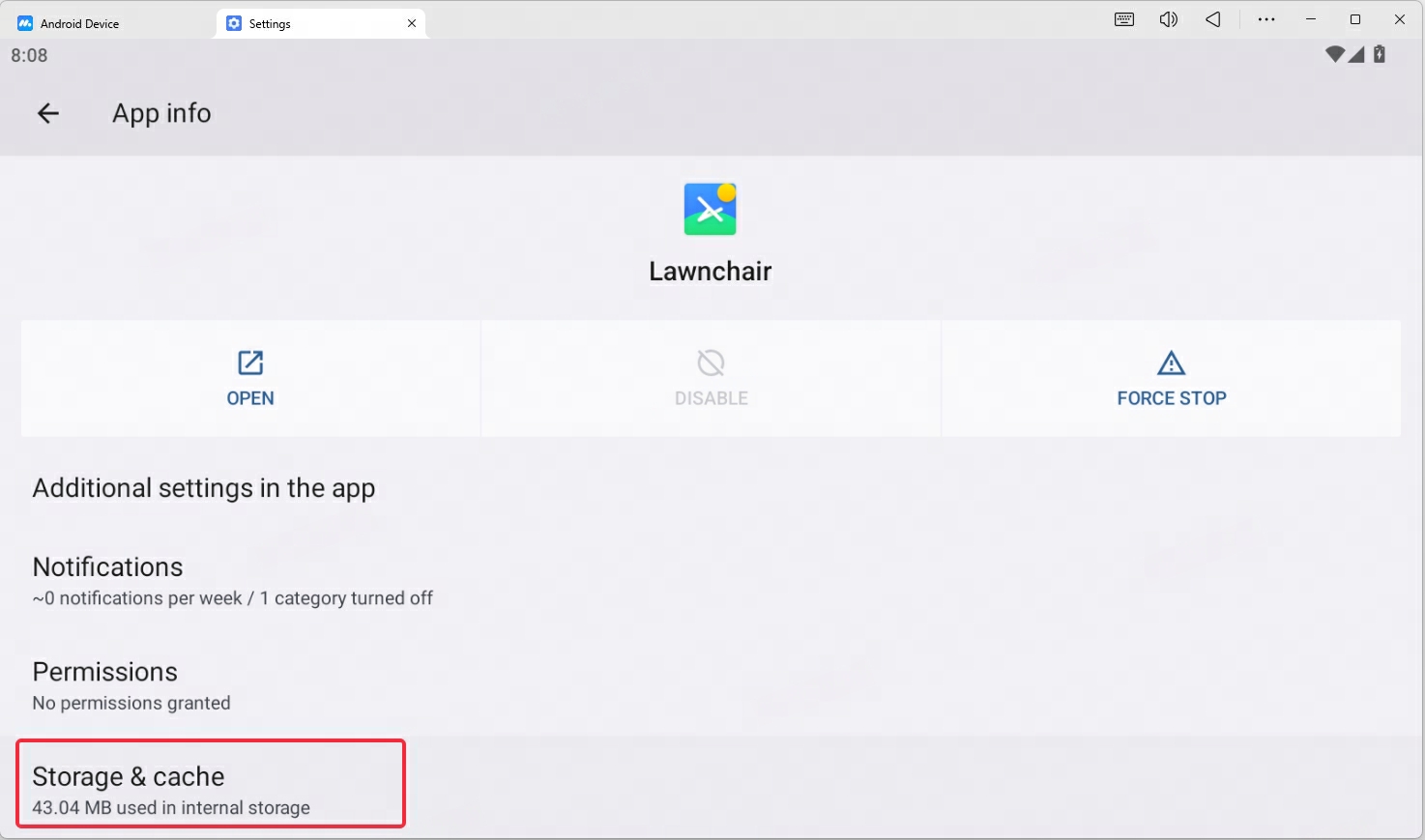 After switching the language, some texts on the emulator may still be displayed in the original language due to cache. You can change to the corresponding language in the following ways: Go to Settings-Apps-Lawnchair-Storage & cache-Clear Storage.