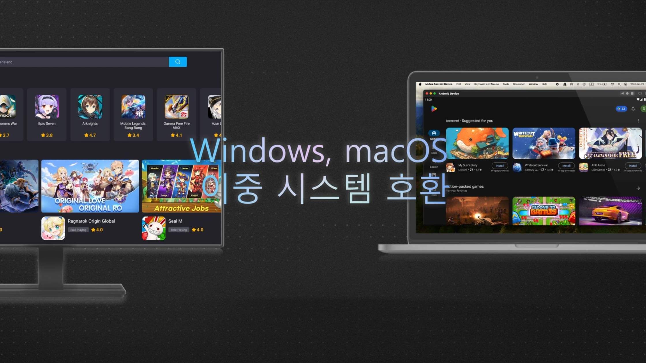 Android 12와 호환되며, PC 또는 Mac에서 300만 개 이상의 휴대폰 게임을 안정적으로 실행하고, 기기 연동을 지원하며 원활한 키보드와 마우스 조작을 제공합니다.